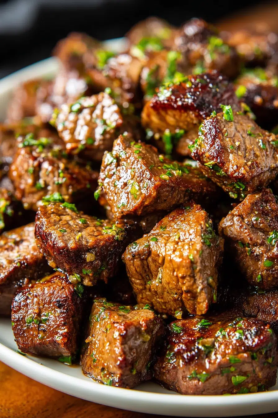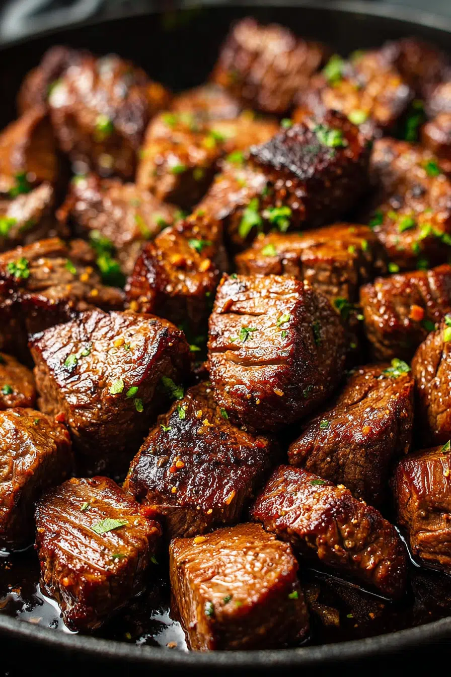 Remove the steak bites from heat. Let them rest for 2–3 minutes before serving to retain juices. Garnish with extra parsley for a pop of color.