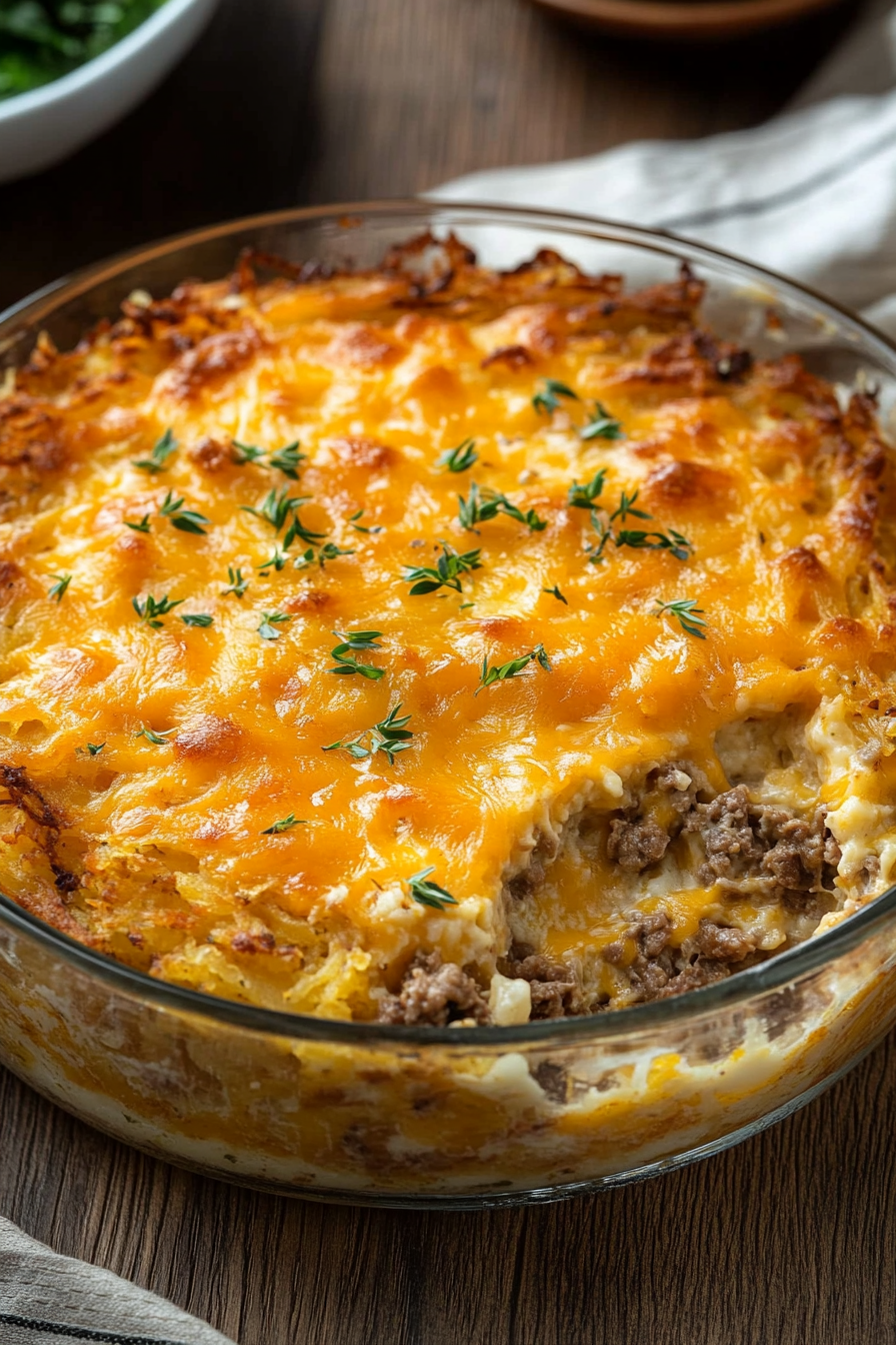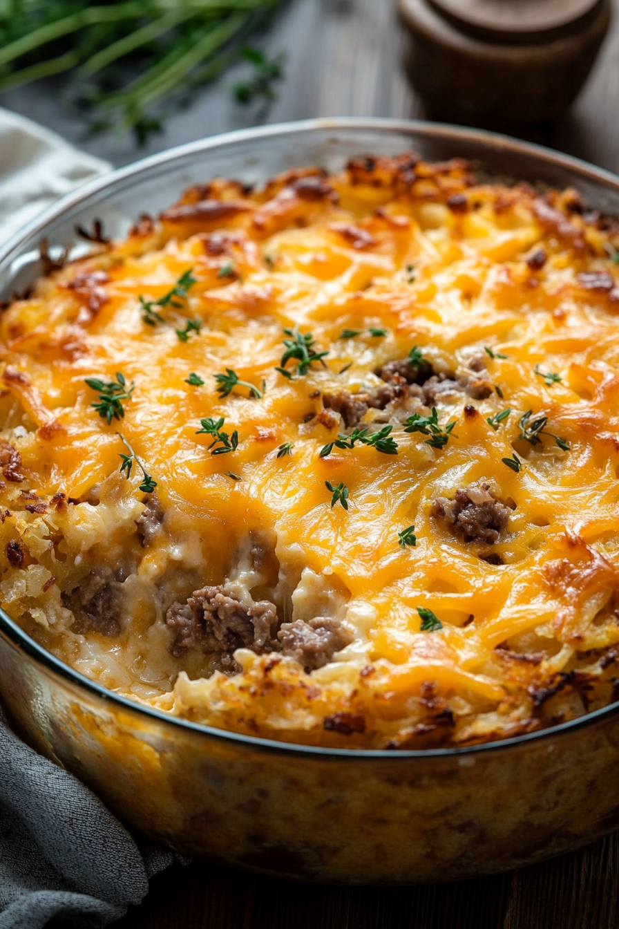 What makes this comfort food casserole so irresistible is not just its delightful flavor, but also the story behind it. Imagine a time when cooks had to be inventive—using every resource at hand to create a meal that could lift spirits during hard times. That spirit of creativity is alive in every bite of this casserole. The rich, velvety layers of creamy sour cream and melted cheddar merge with the crispy, golden edges of perfectly cooked hash browns to evoke a sense of nostalgia and warmth. It’s a recipe that’s as versatile as it is satisfying, perfect for any meal of the day—be it a cozy breakfast to start your day off right or a hearty dinner to gather around with loved ones.