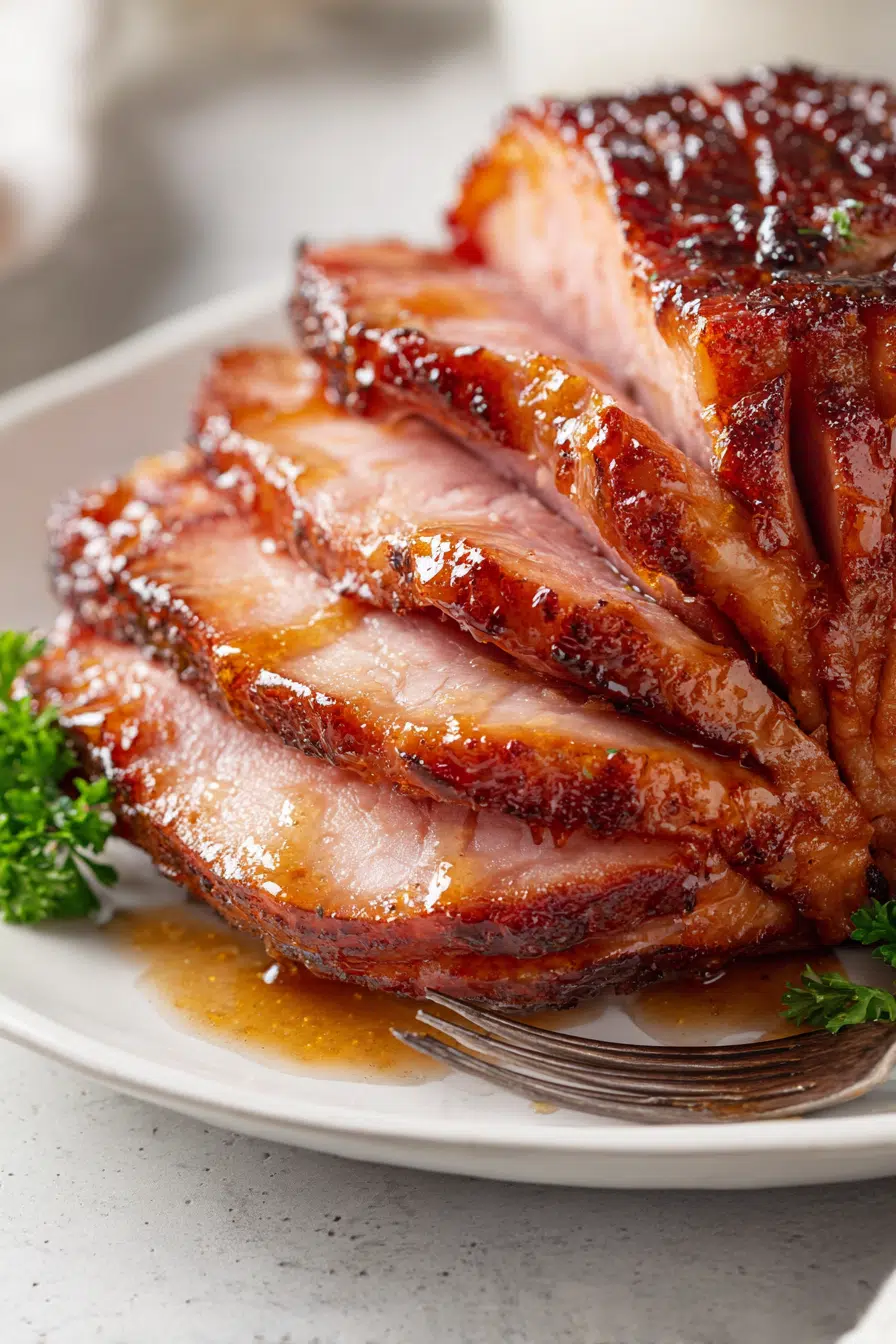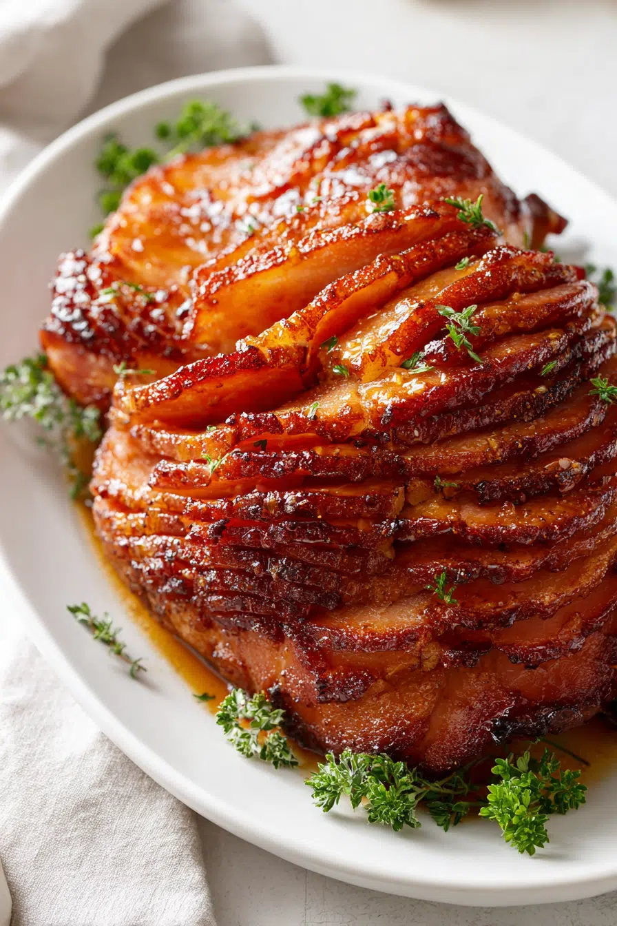 The golden glaze makes any ham feel festive and indulgent, adding elegance to Christmas, Easter, or Sunday dinner.