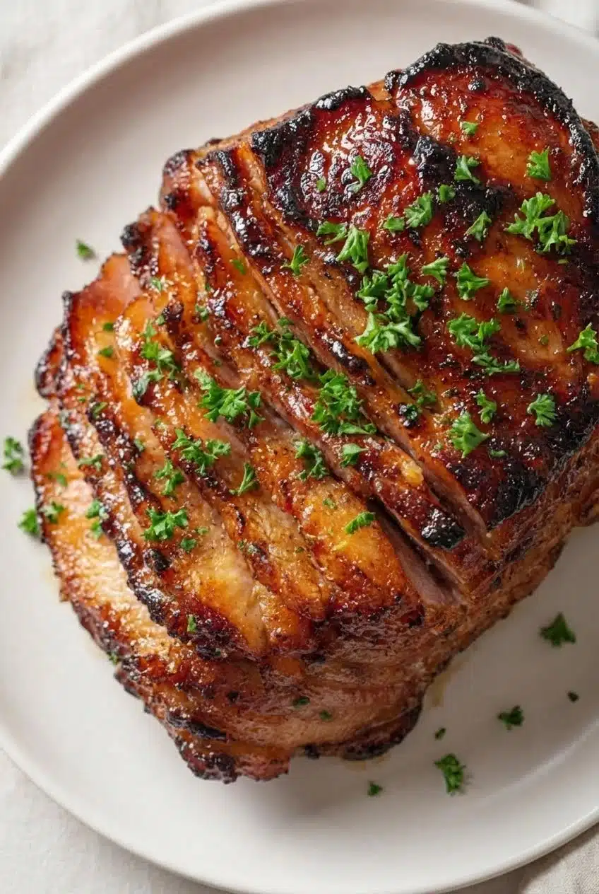 Once the ham reaches an internal temperature of 140°F (60°C) and has a shiny, caramelized glaze, remove it from the oven. Let it rest 10–15 minutes before slicing—this locks in juices and flavor.