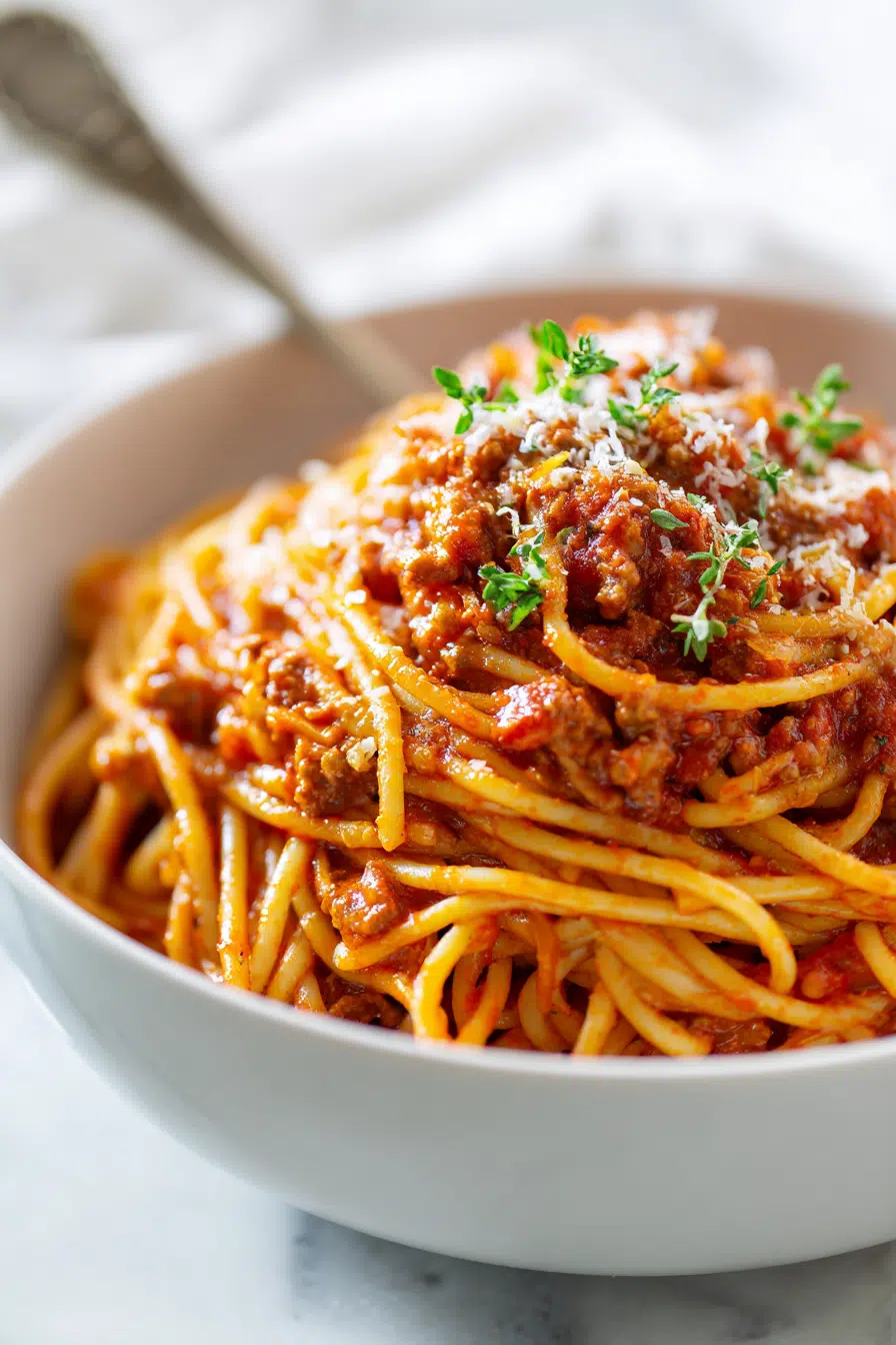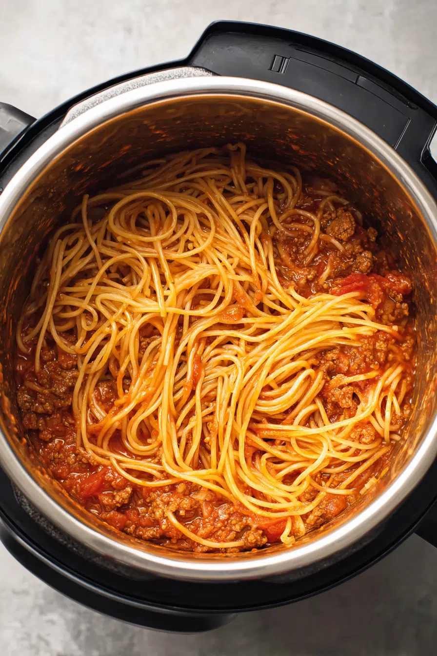 The result? Tender pasta, rich sauce, and a perfectly balanced, comforting bowl of Instant Pot spaghetti.