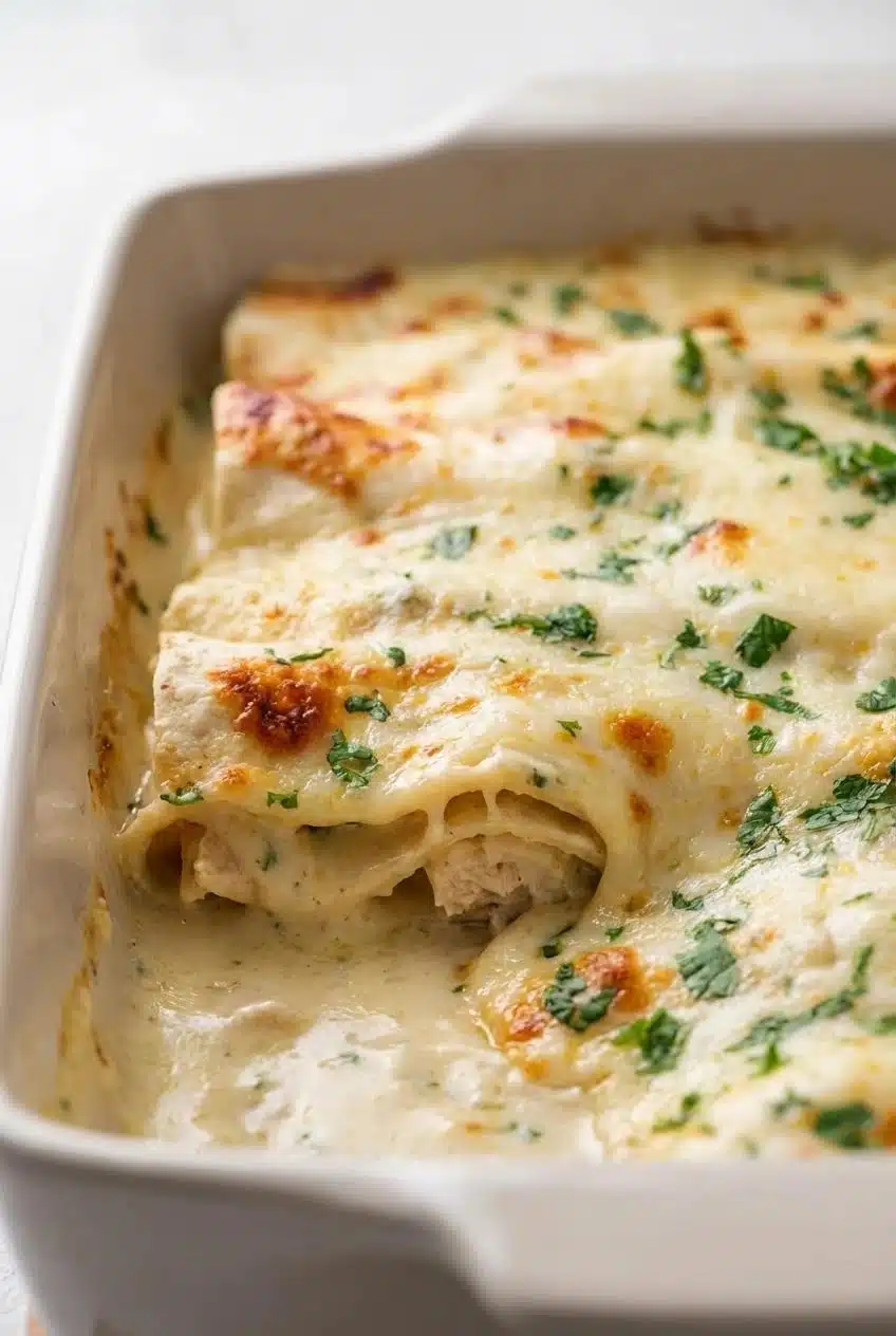 There are some recipes that instantly feel like home — the kind that fill your kitchen with warm, cheesy aromas and bring everyone wandering in to ask, “Is dinner ready yet?” These Queso Chicken Enchiladas are exactly that kind of meal. Comforting, saucy, and generously cheesy, they’re the recipe I reach for when I want something cozy but still impressive enough to serve to guests.