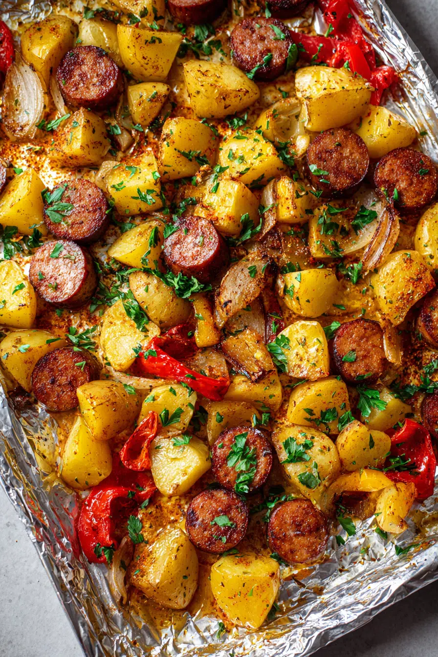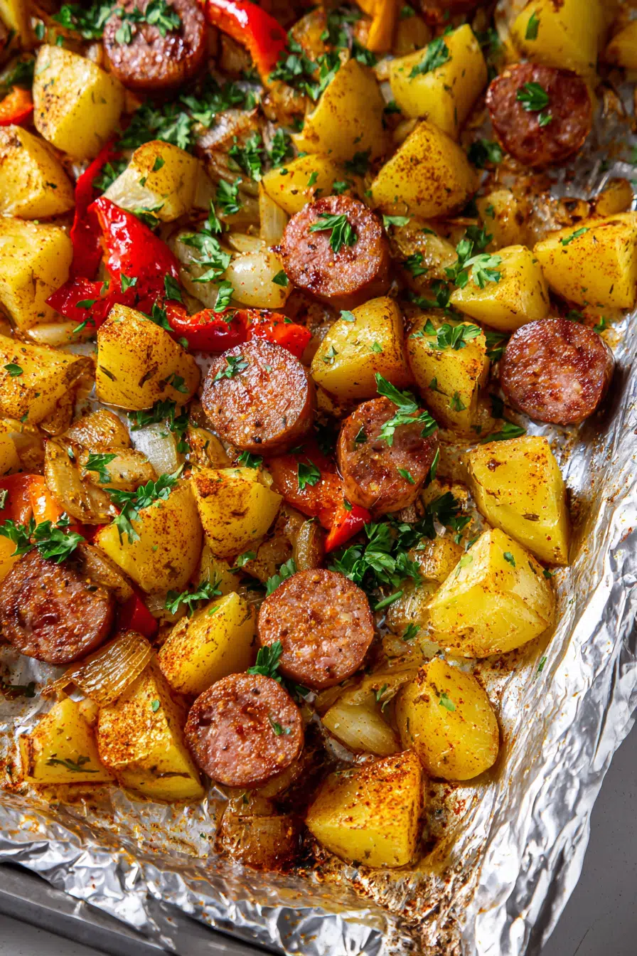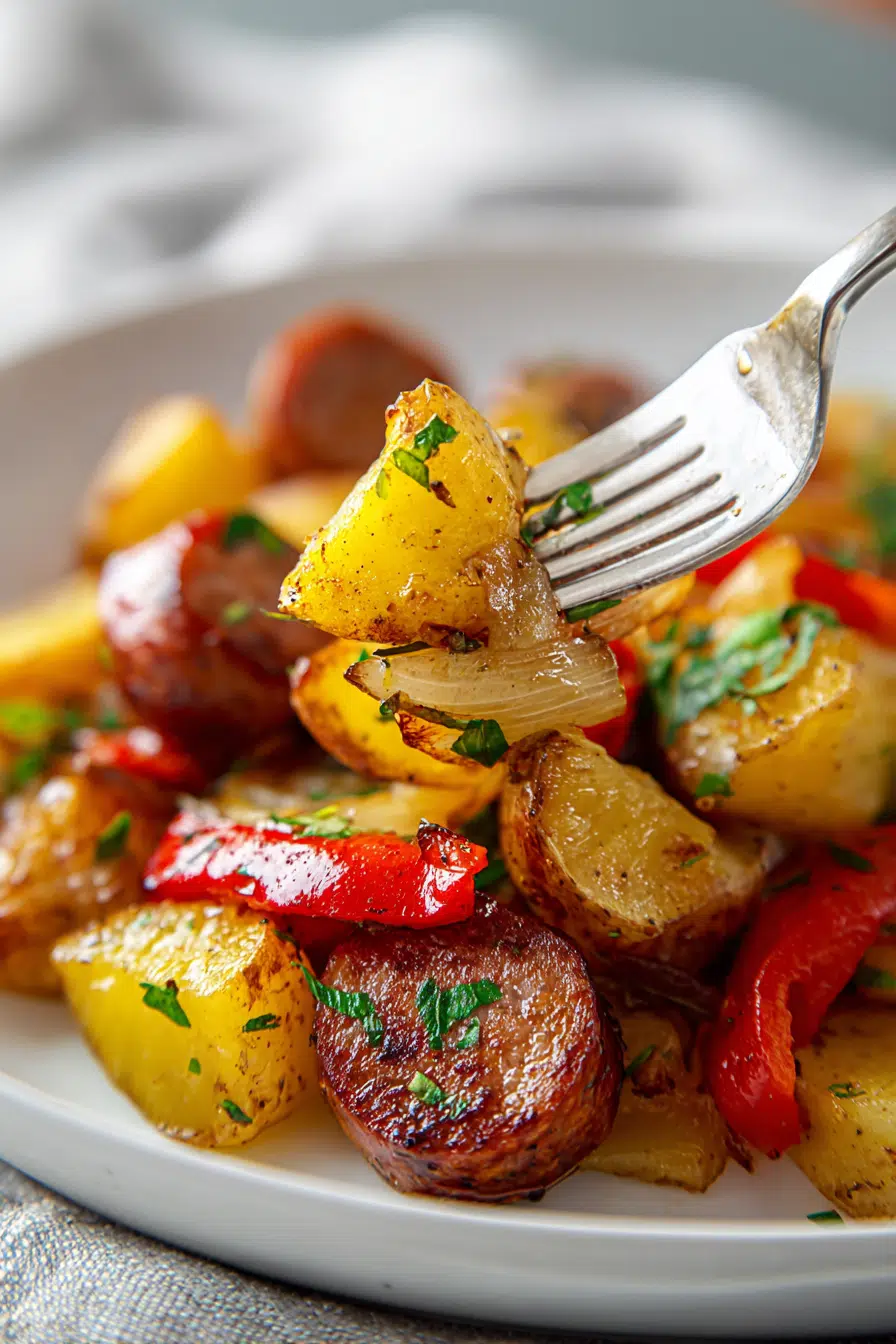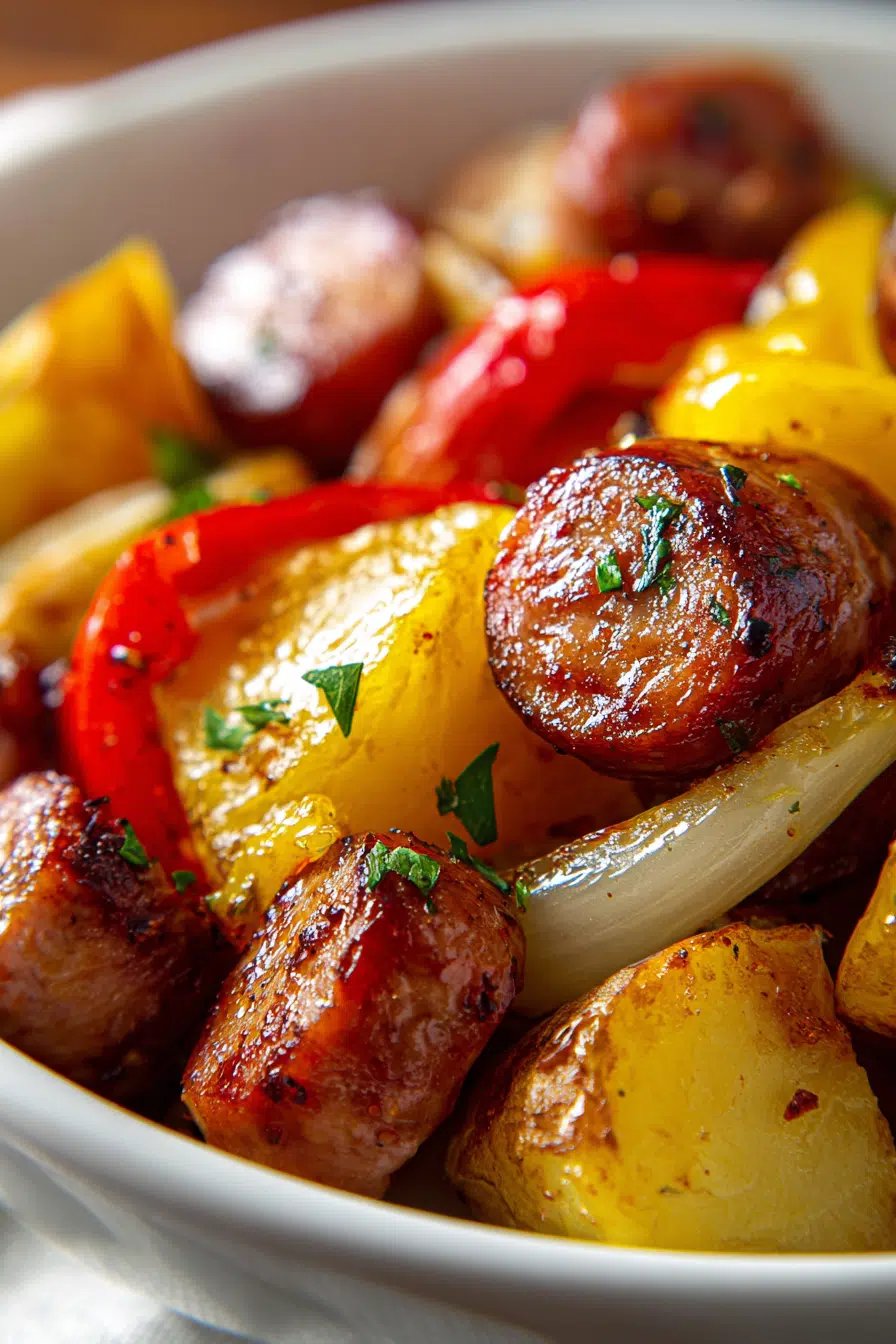 I’ve made this dish countless times for dinner, especially on busy weeknights or lazy Sundays when comfort is the priority. It’s also one of those recipes that somehow feels special enough for holidays, even though it couldn’t be easier. The colors alone—golden potatoes, vibrant peppers, and browned sausages—make it feel warm and inviting.