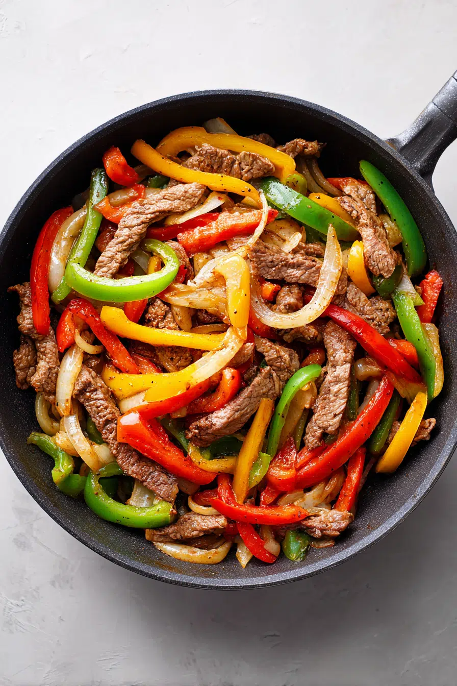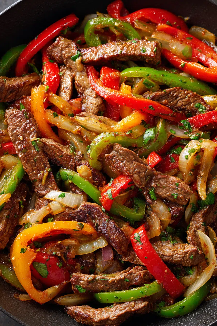 Sweet peppers, soft onions, and savory steak create a vibrant skillet everyone loves, even picky eaters.
